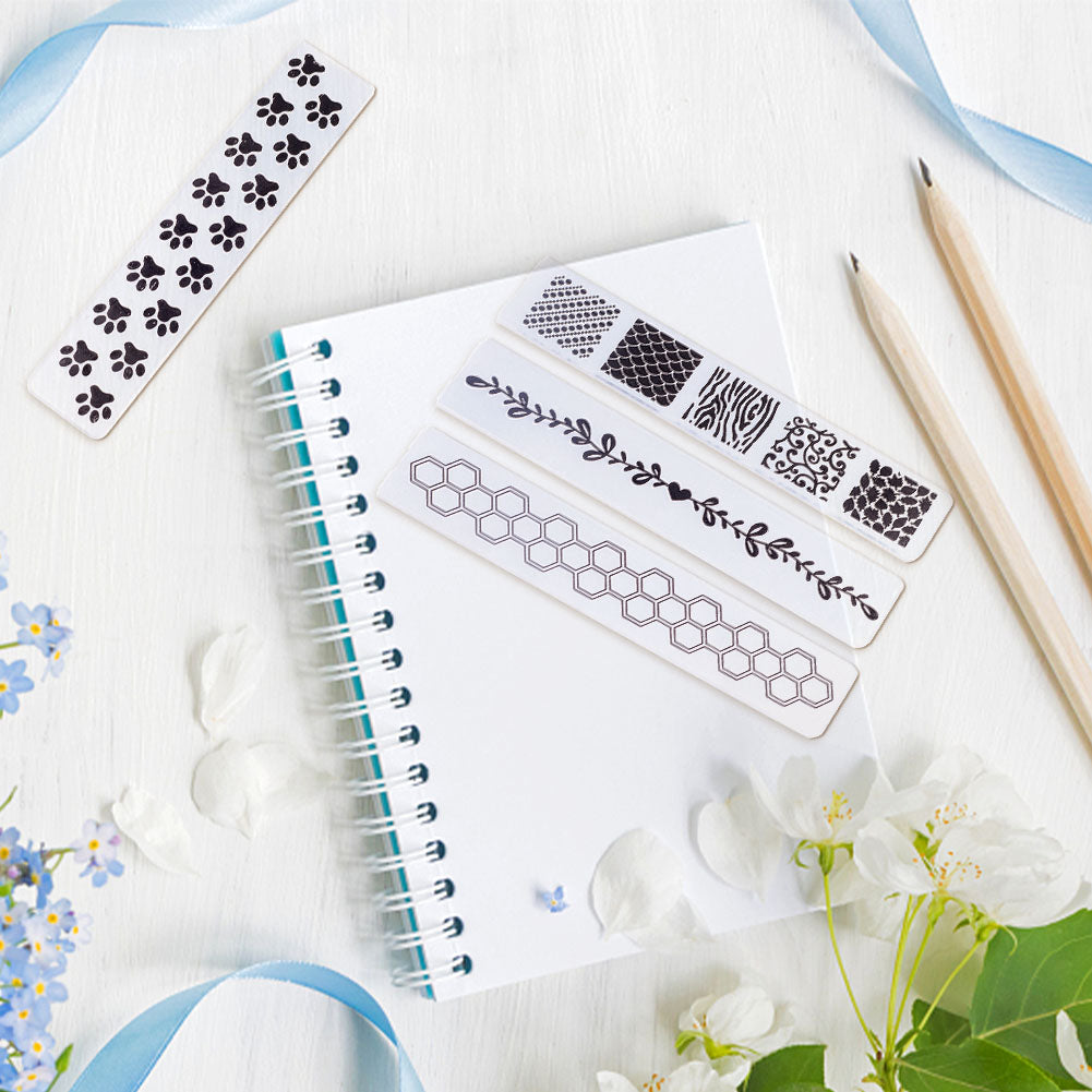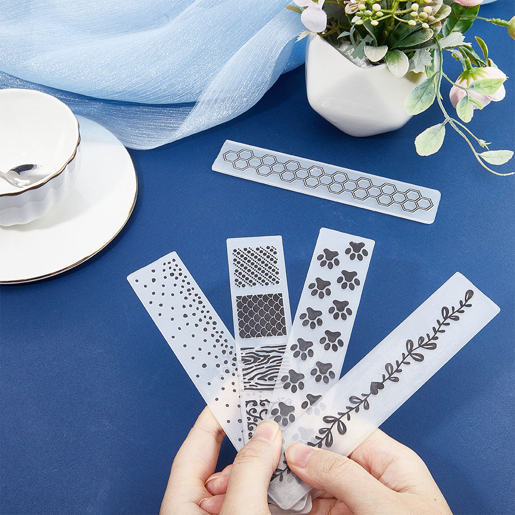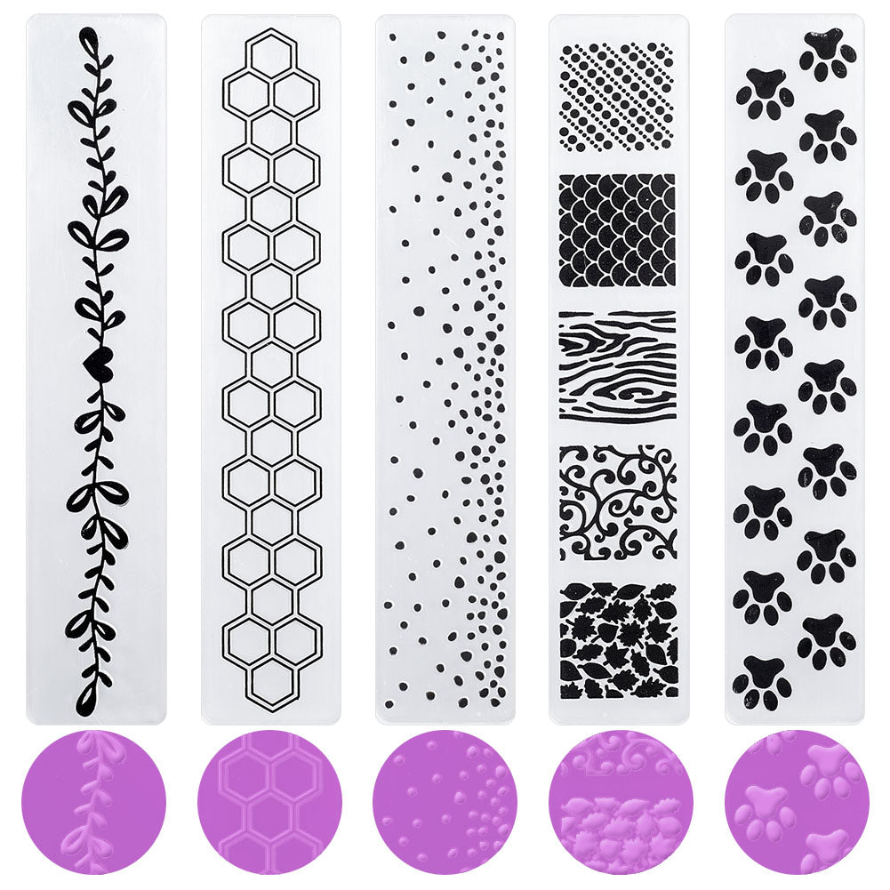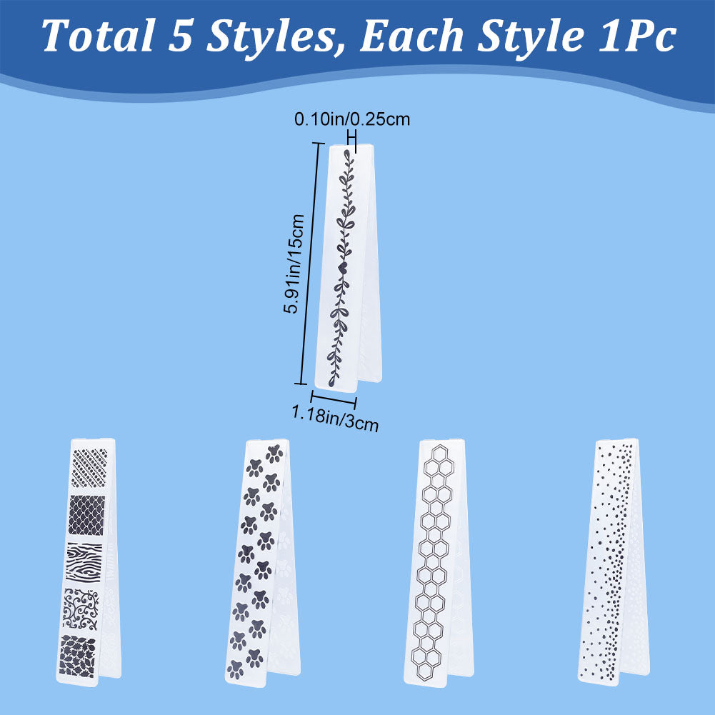 5Pcs 5 Styles Plastic Embossing Folders, Concave-Convex Embossing Stencils, for Handcraft Photo Album Decoration, Mixed Shapes, 30x150x2.5mm, 1pc/style