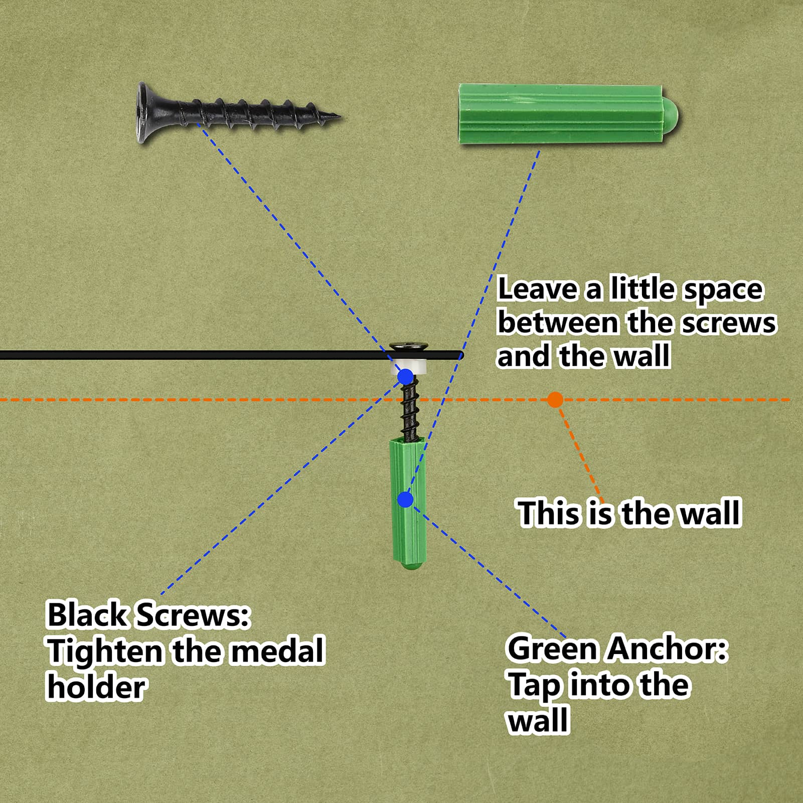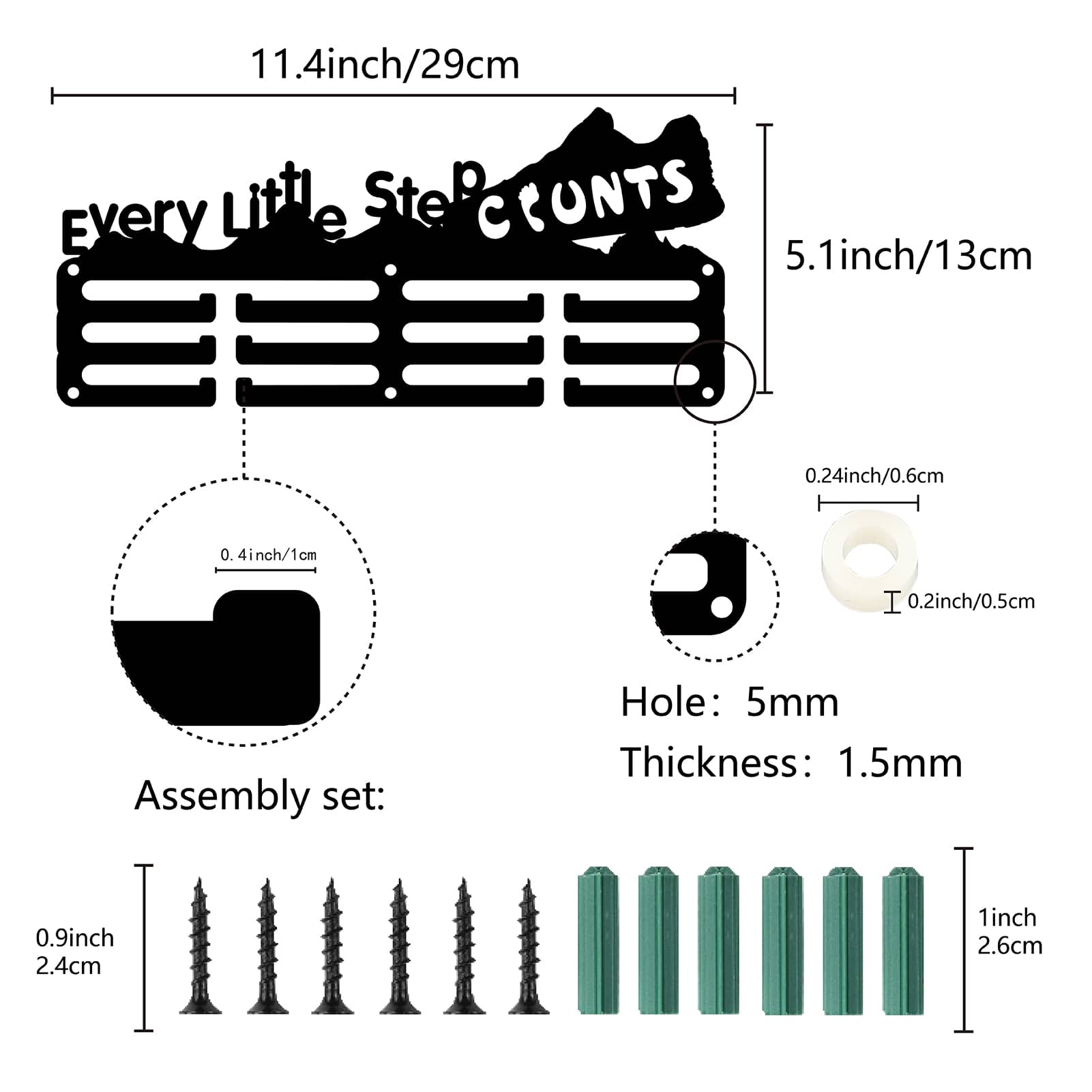 Sports Theme Iron Medal Hanger Holder Display Wall Rack, 3-Line, with Screws, Word Every Little Step Counts, Word