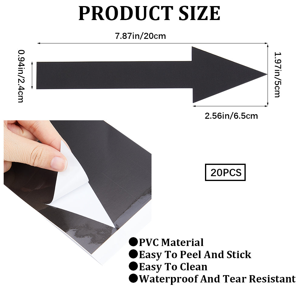PVC Self Adhesive Arrow Label Stickers, Waterproof Directional Arrow Sign Decals for Floors, Walls and Smooth Surfaces, Black, 50x199x0.2mm, 2pcs/set