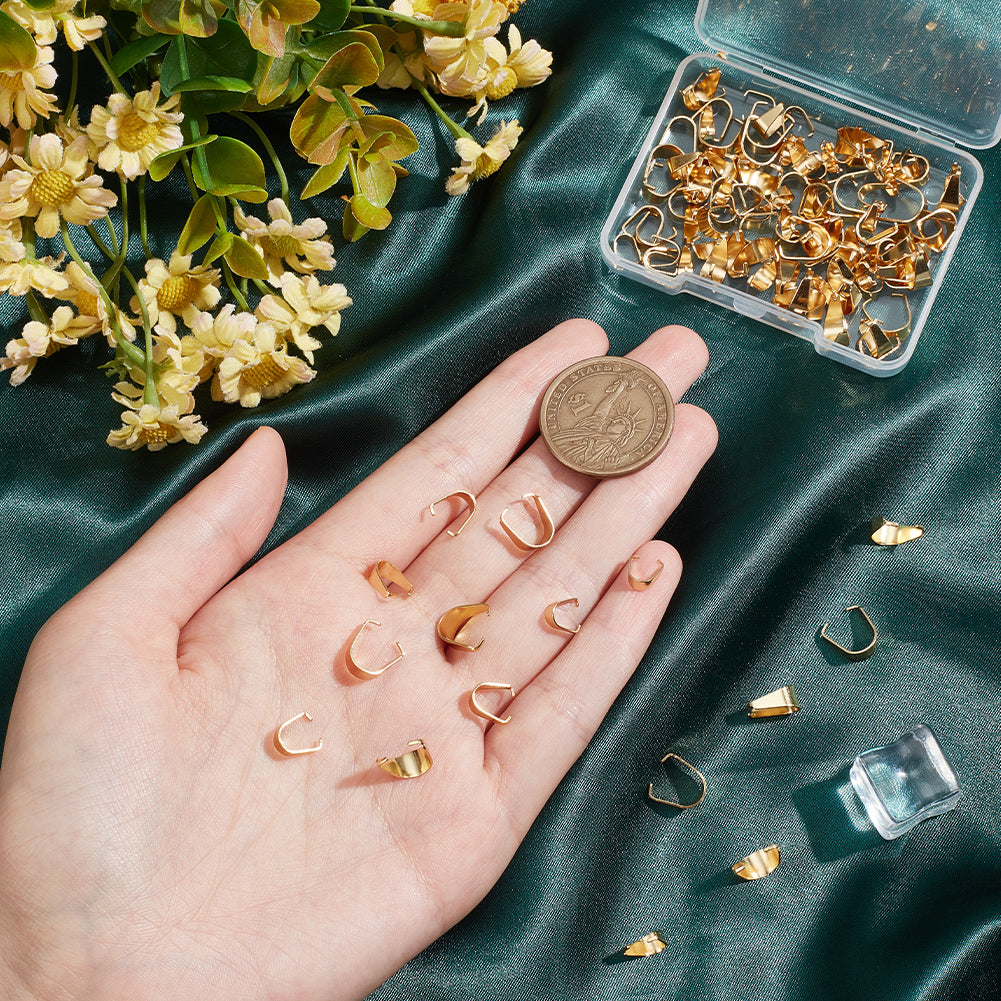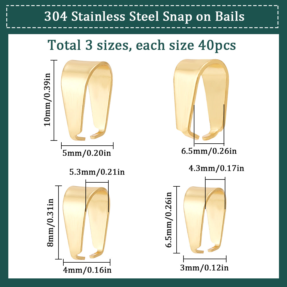 120Pcs 3 Size 304 Stainless Steel Snap on Bails, Golden, 6.5~10x3~5mm, Pin: 0.3~0.4x0.5~0.9mm, 40Pcs/size