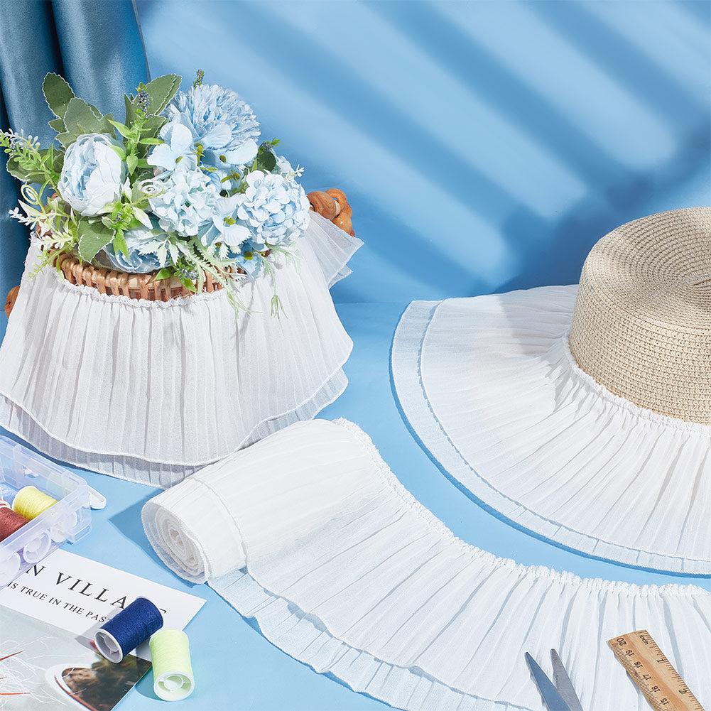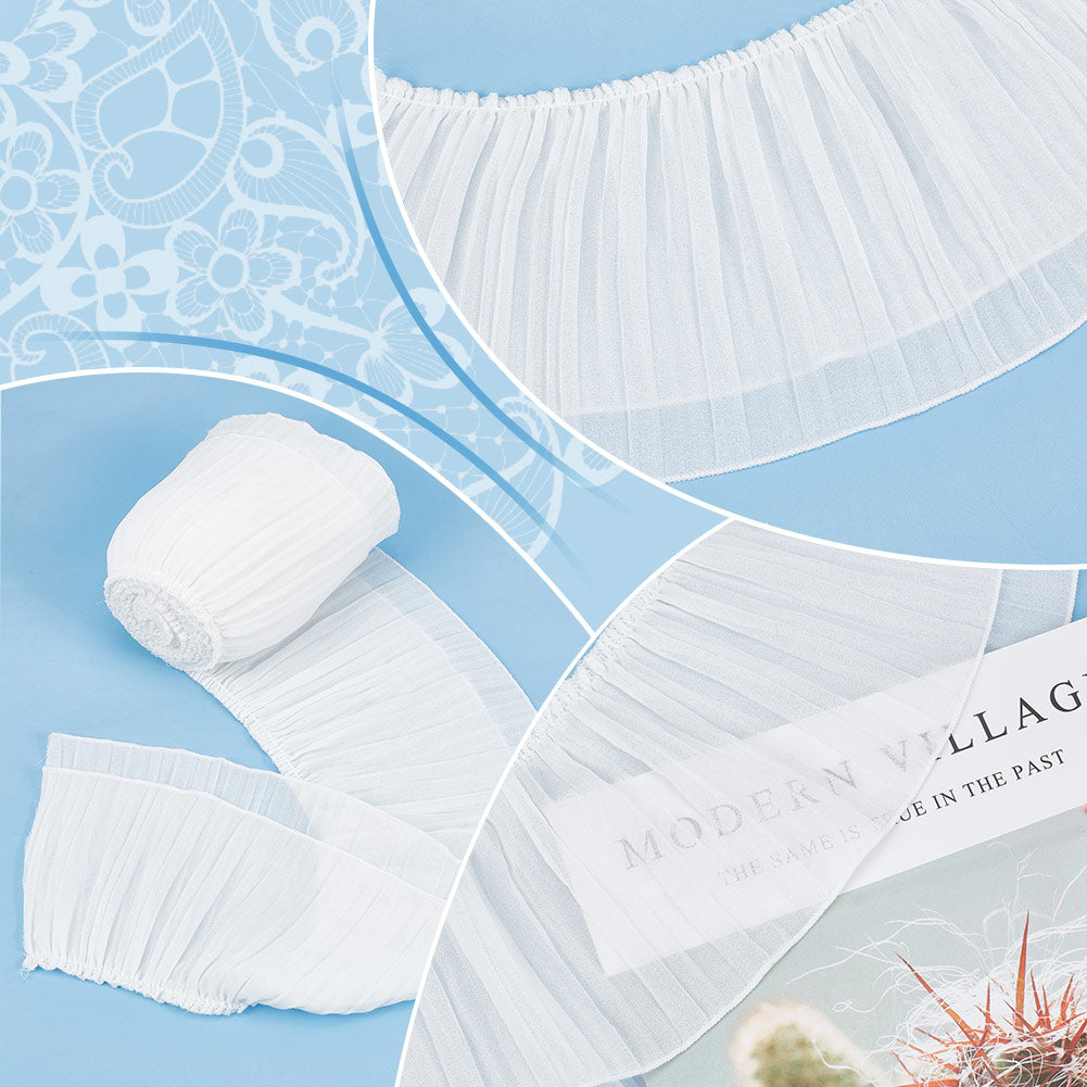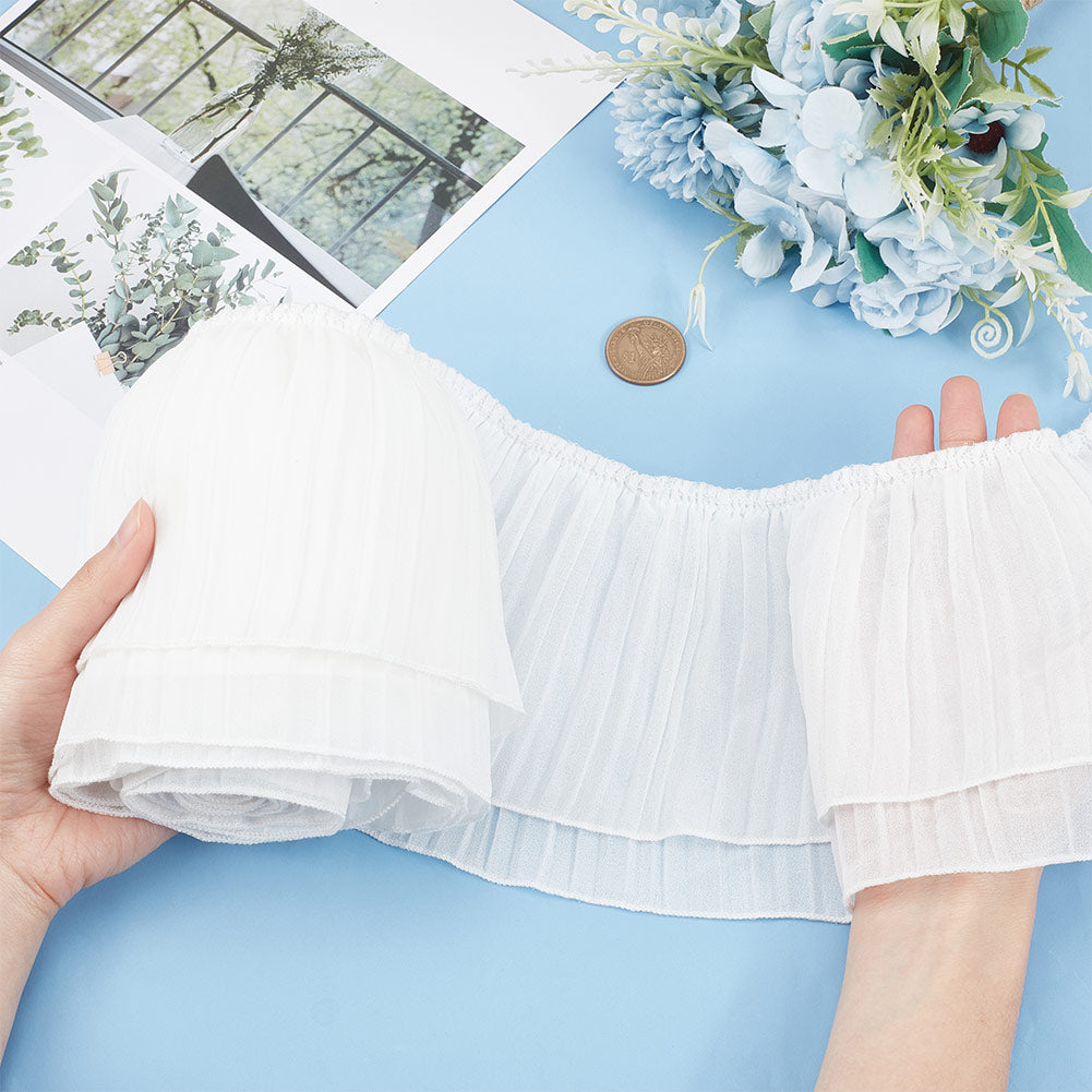 3 Yards Pleated Polyester Ribbon, Clothes Accessories, White, 5-1/4 inch(135mm)