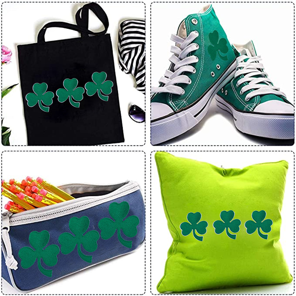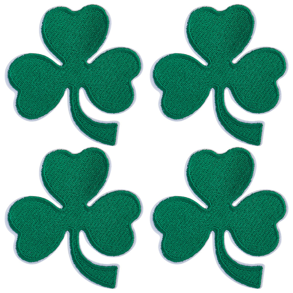 Saint Patrick's Day Iron on Shamrock Cloth Patches, Embroidery Appliques, Sewing Craft Decoration, Green, 77x72x1.5mm