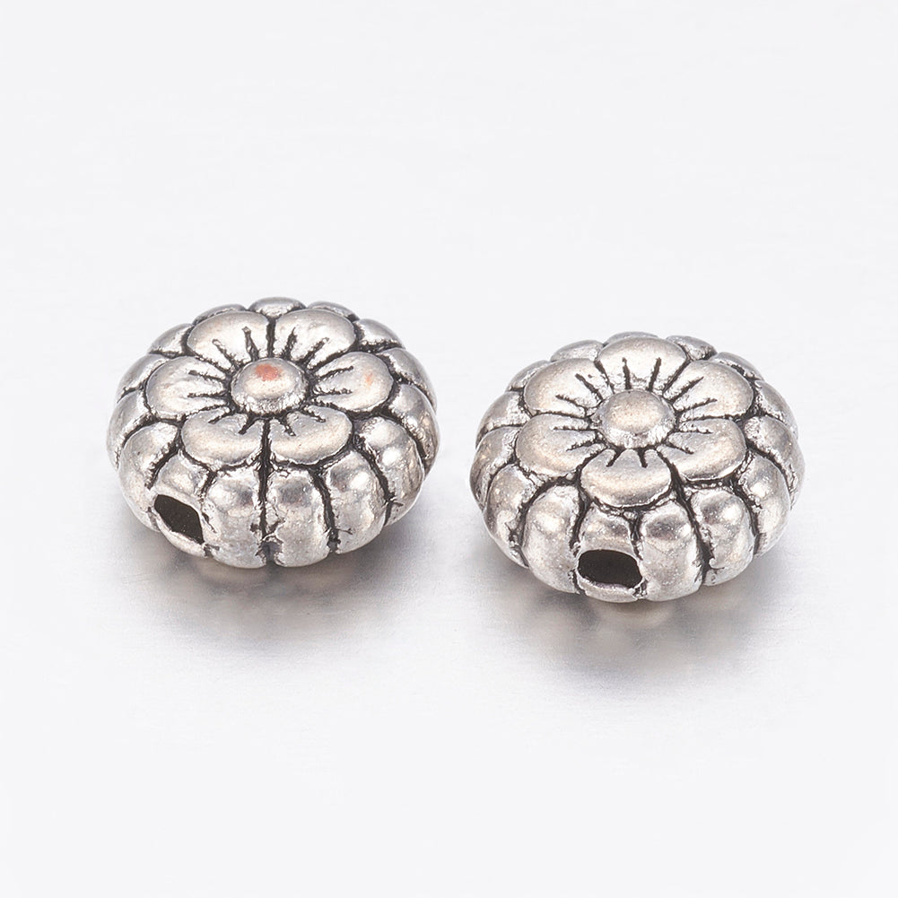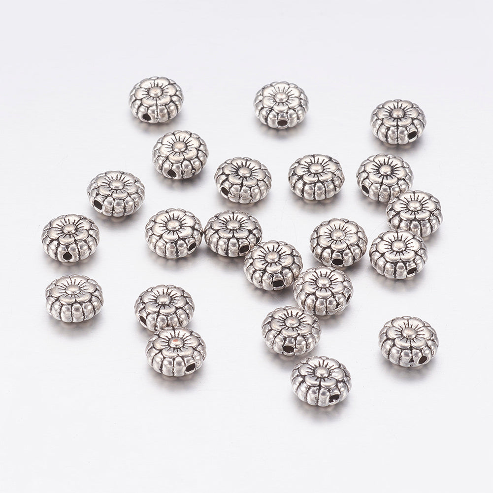 Tibetan Style Alloy Beads, Lead Free & Nickel Free & Cadmium Free, Flower, Great for Mother's Day Gifts making, Antique Silver, about 7.5mm in diameter, 3.5mm thick, hole: 1mm, 50pc/Set