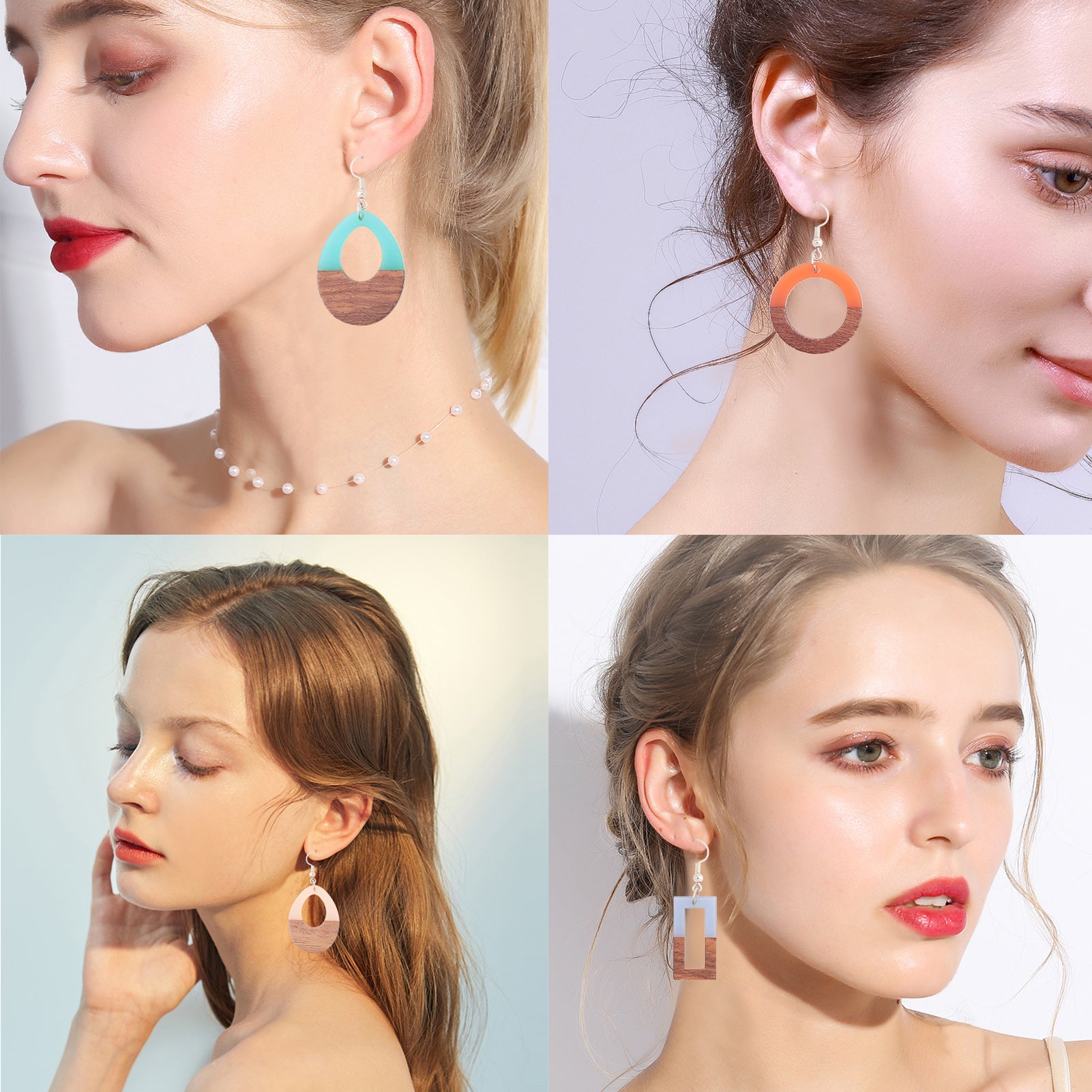 DIY Dangle Earring Making, with Resin & Wood Pendants, Brass Earring Hooks, Iron Jump Rings, Platinum