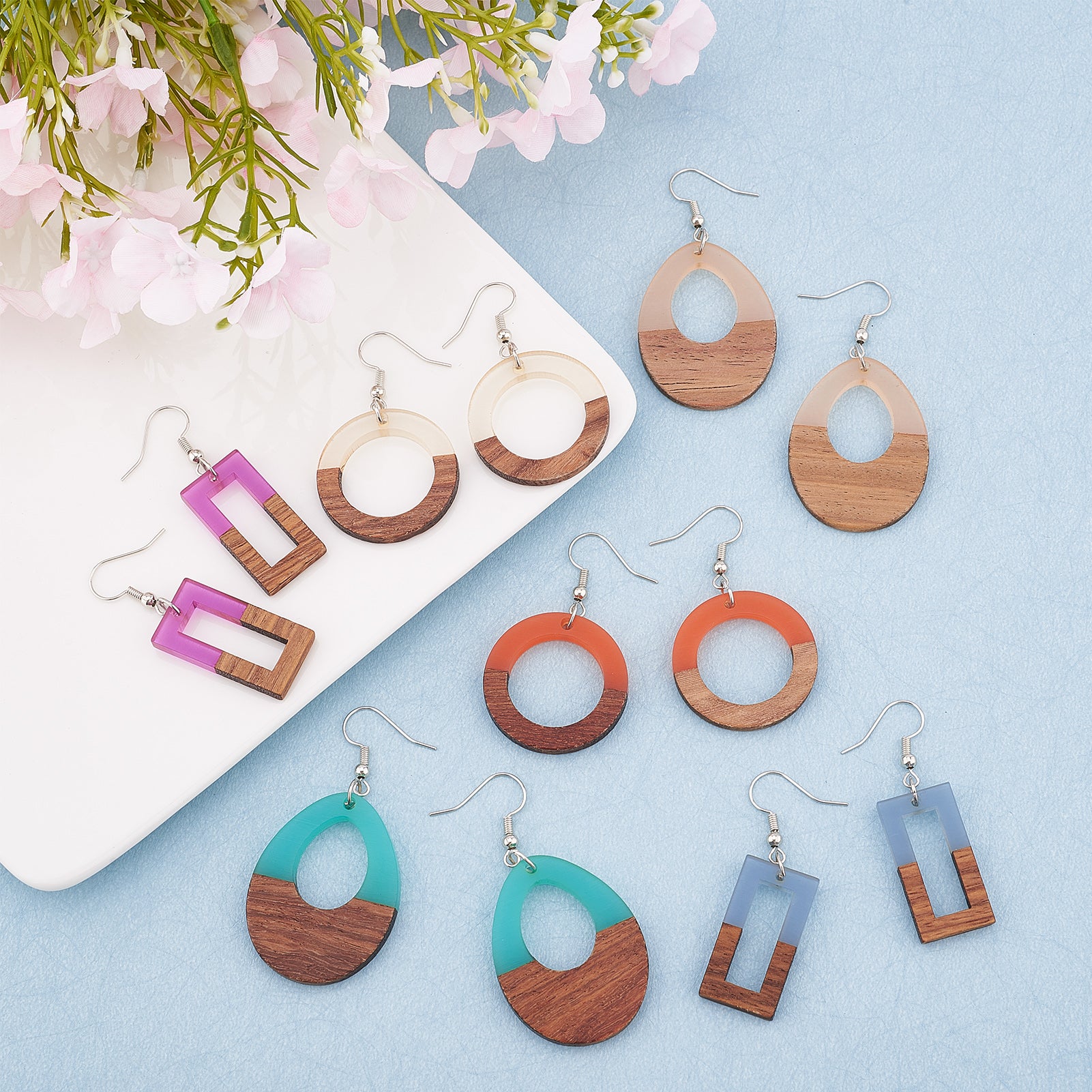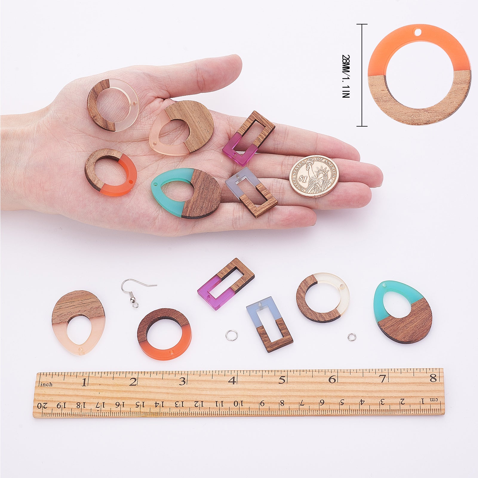 DIY Dangle Earring Making, with Resin & Wood Pendants, Brass Earring Hooks, Iron Jump Rings, Mixed Color, Pendants: 12pcs/set