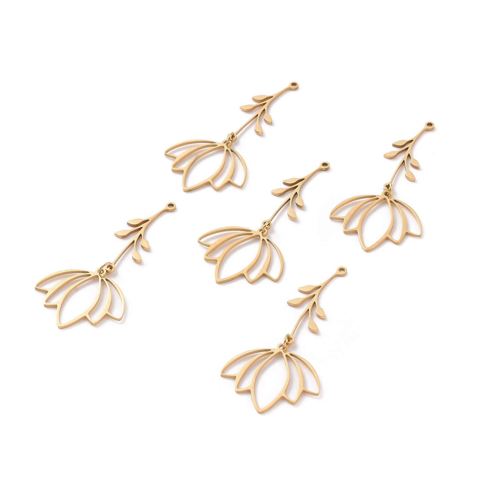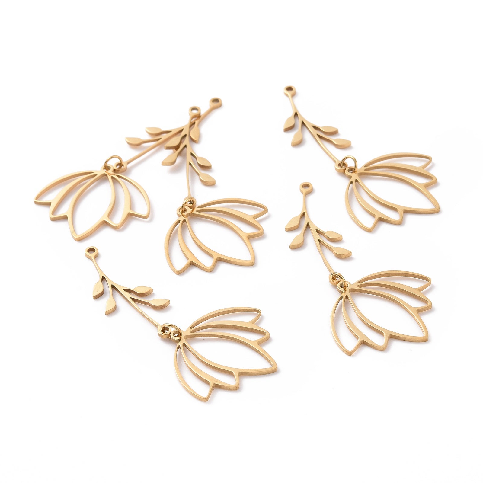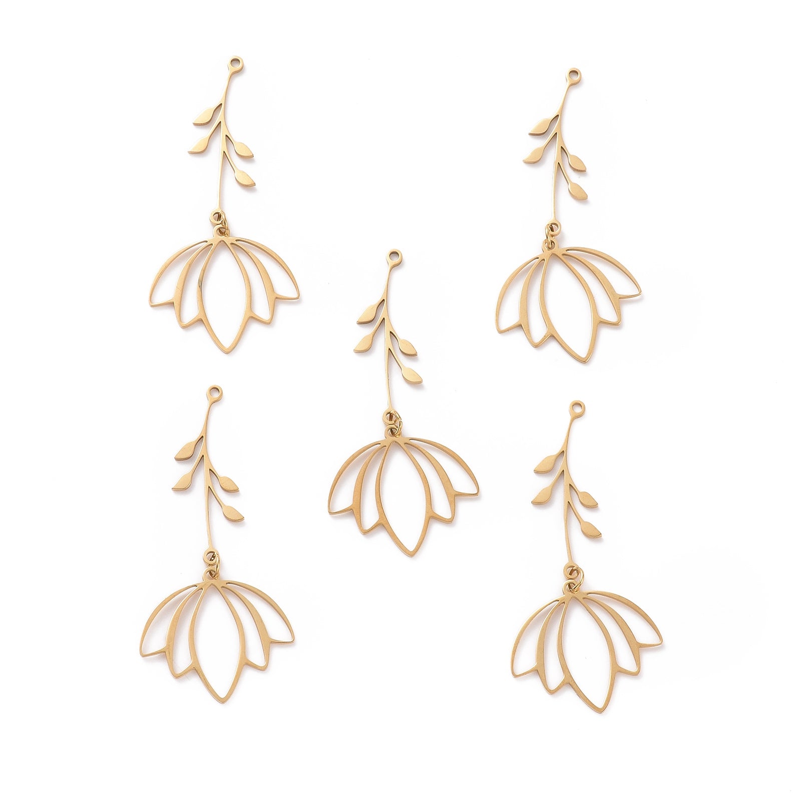 201 Stainless Steel Big Pendants, Laser Cut, with Jump Rings, Flower, Golden, 52.5mm, Hole: 1.4mm, 5pcs/Set
