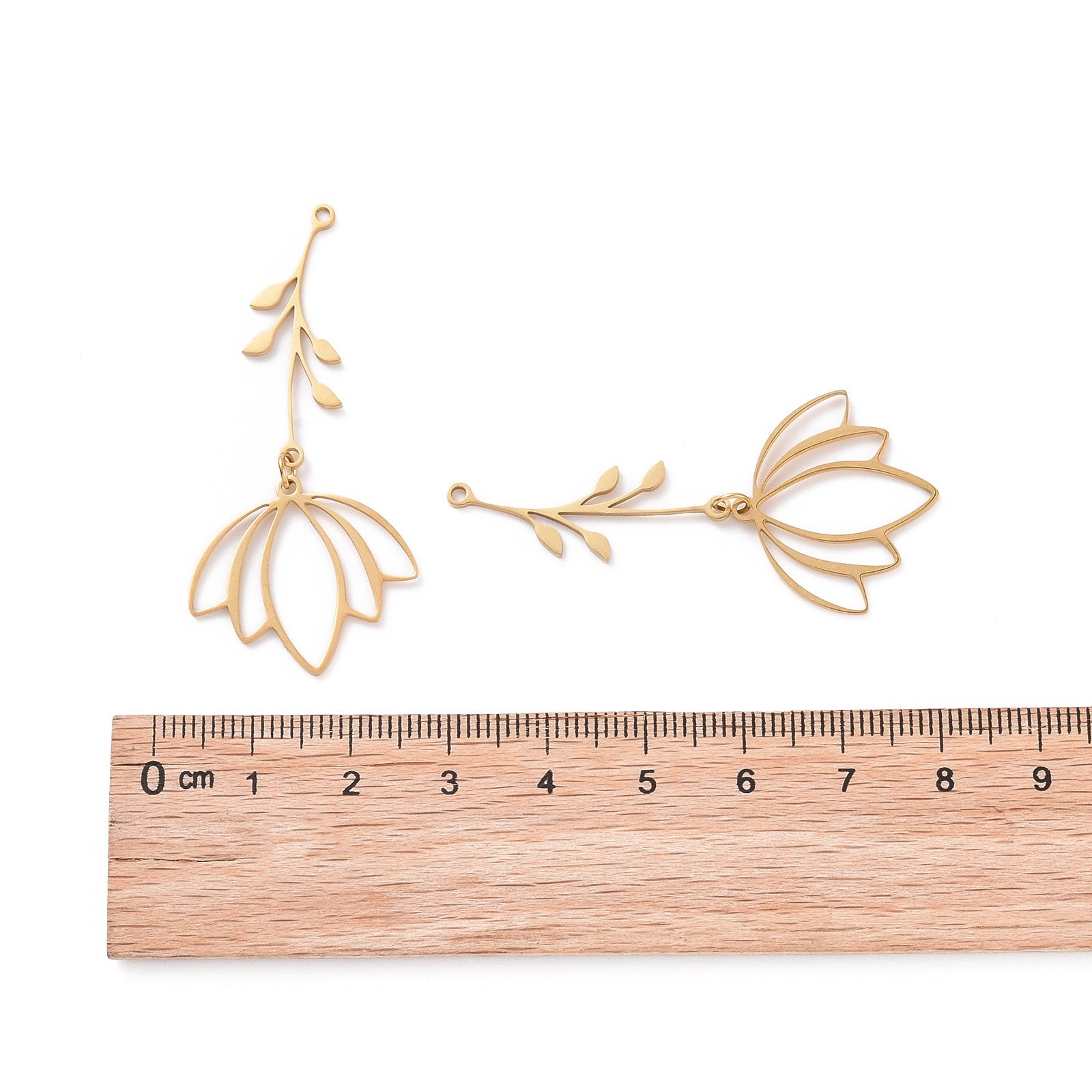Size: about 2.07 inch(52.5mm) long, hole: 0.06 inch(1.4mm,), flower: 0.83x0.94x0.04 inch(21x24x1mm,), jump ring: 0.16x0.02 inch(4x0.5mm,), 0.12 inch(3mm) inner diameter.