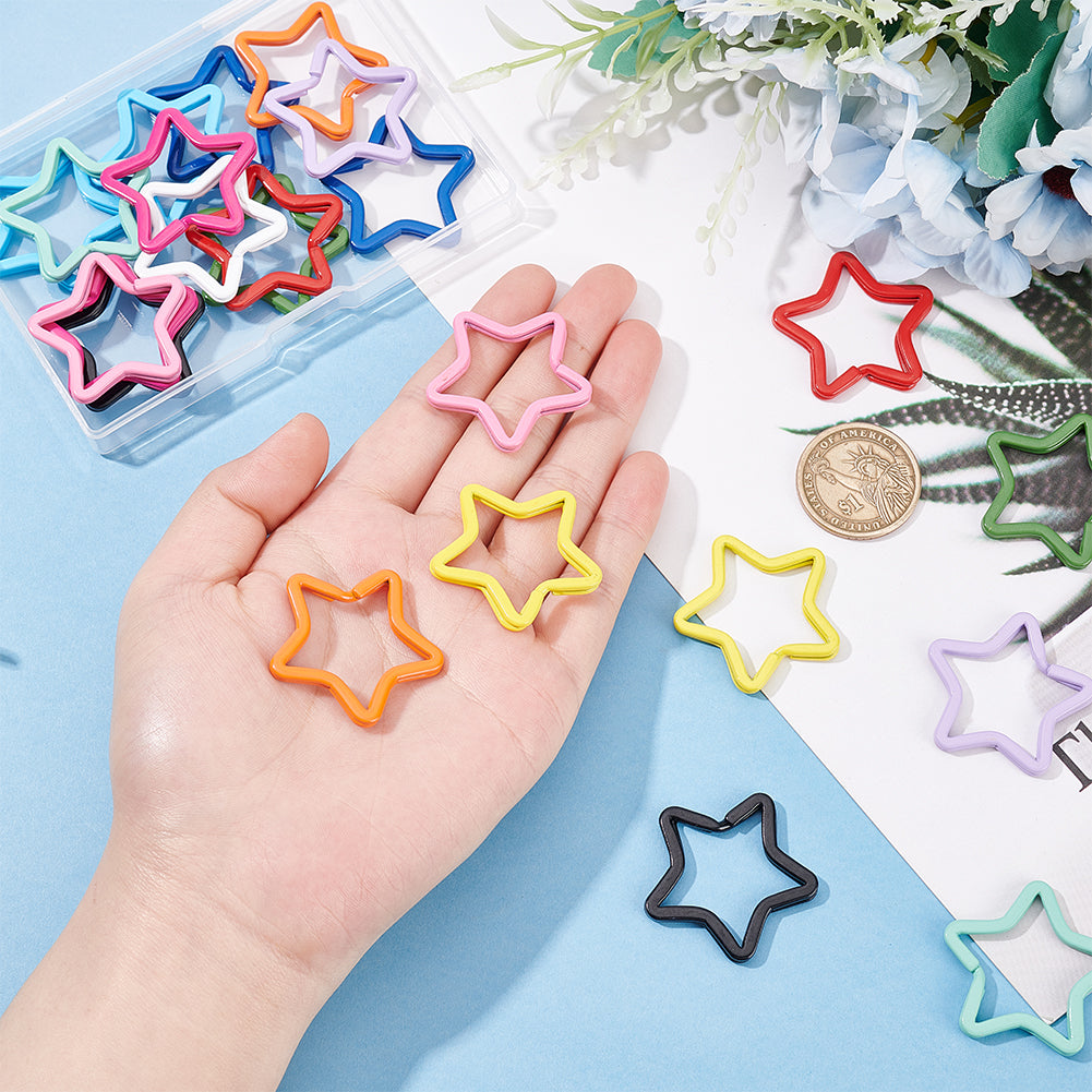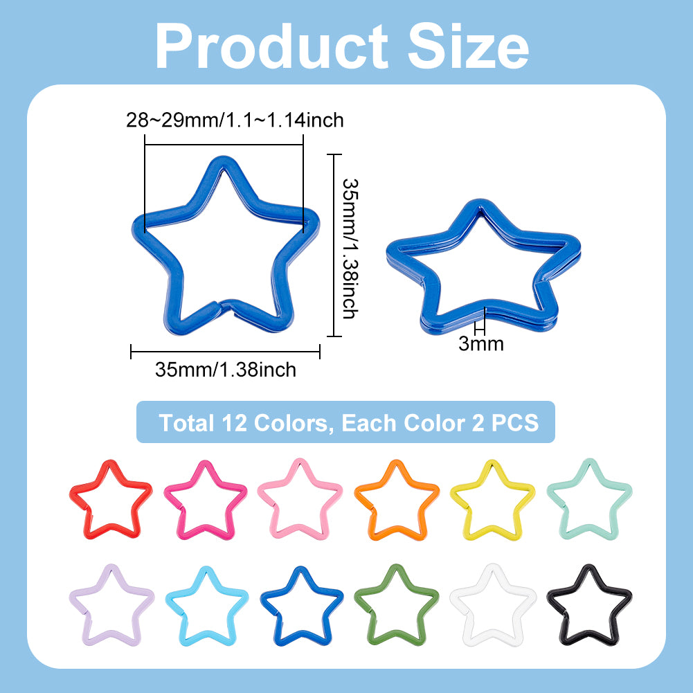 24Pcs 12 Colors Spray-painted Iron Keychain Clasps, Star Shape, Mixed Color, 35x35x3mm, Inner Diameter: 28~29mm, 2pcs/color