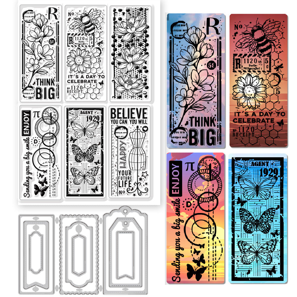 1 Sheet Custom PVC Plastic Clear Stamps, with 1Pc Carbon Steel Cutting Dies Stencils, for DIY Scrapbooking, Photo Album Decorative, Cards Making, Flower