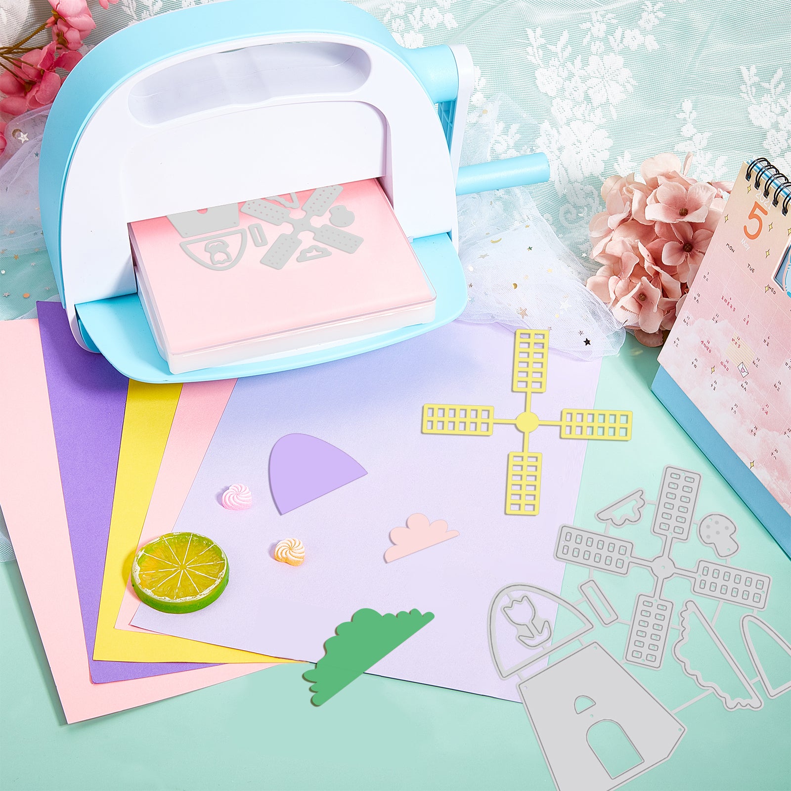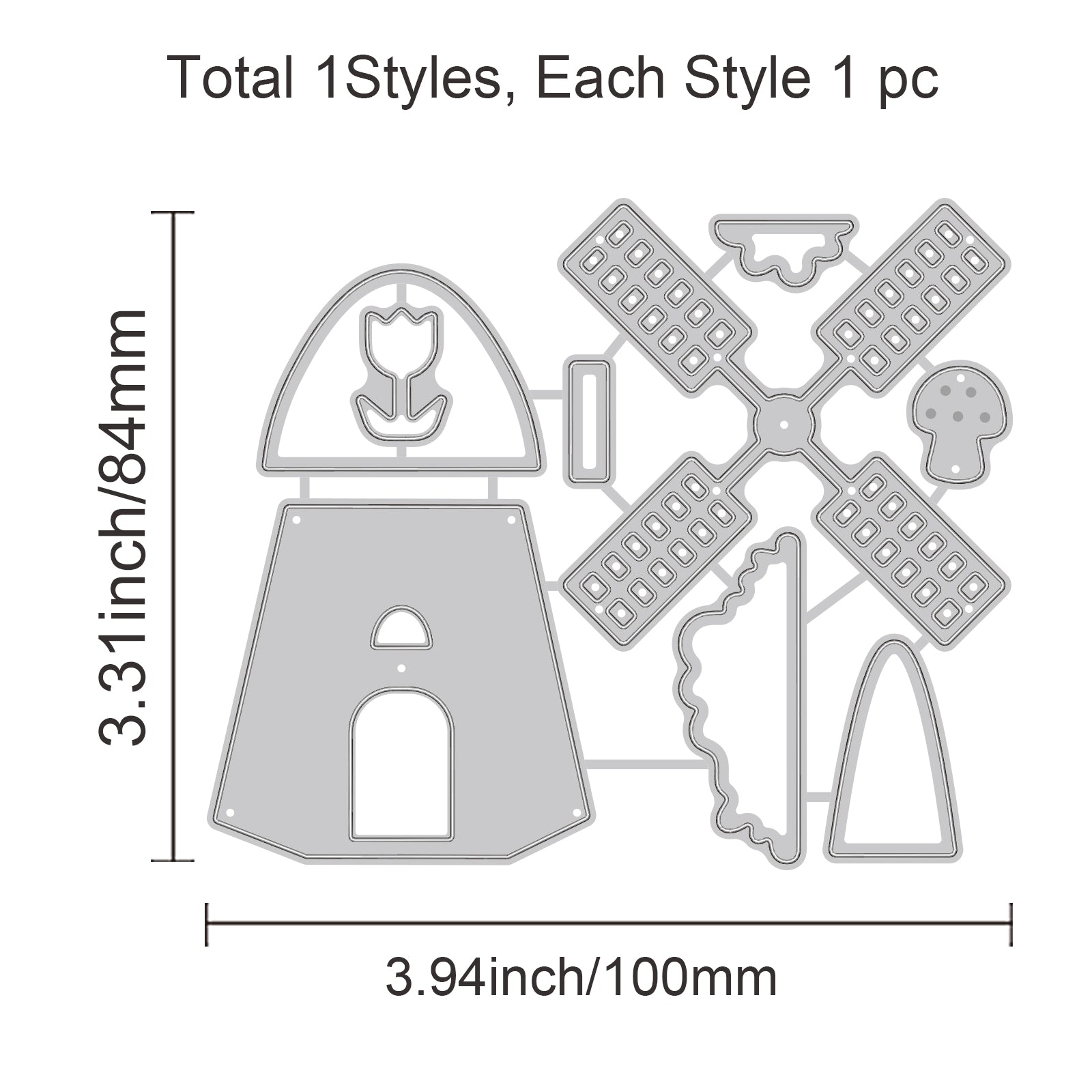 Globleland Windmill, House, Trees, Flowers, Tulips, Grass, Mushrooms Carbon Steel Cutting Dies Stencils, for DIY Scrapbooking/Photo Album, Decorative Embossing DIY Paper Card