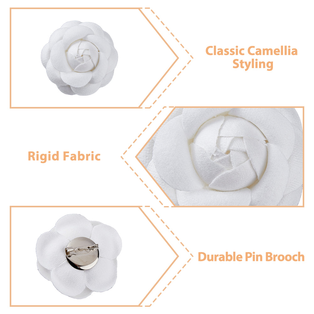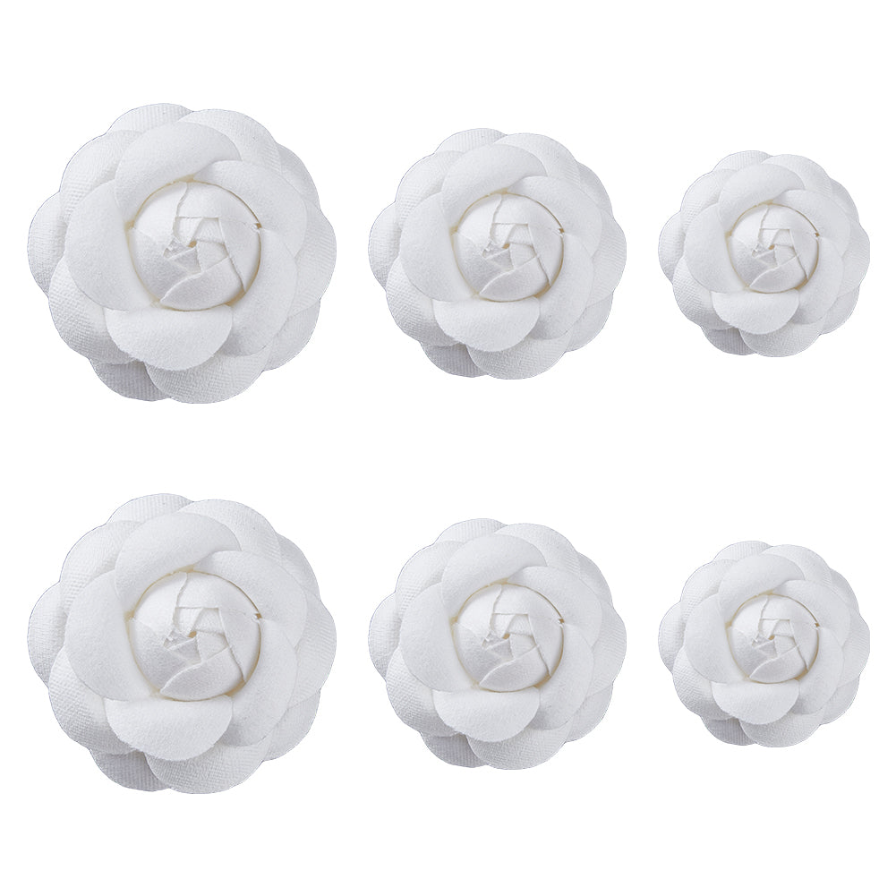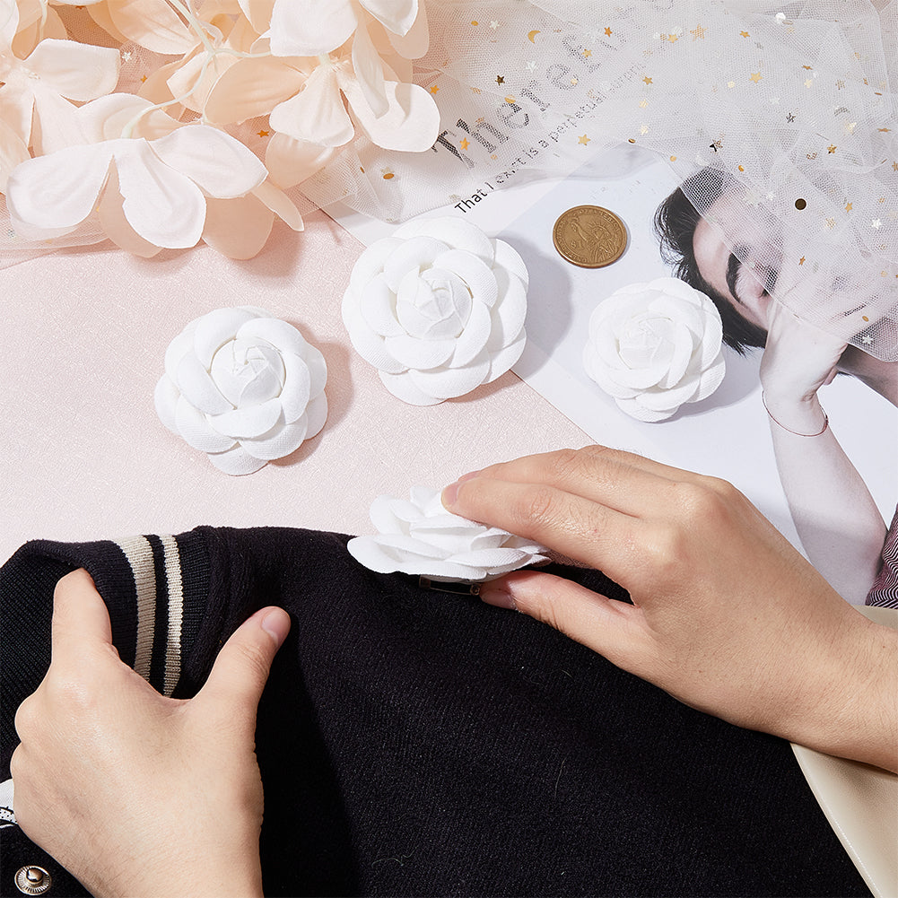6Pcs 3 Size Camellia Shaped Velet Lapel Pins, Alloy Exquisite Brooches for Women, White