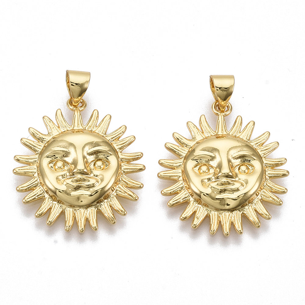 Brass Pendants, Nickel Free, Sun, Real 16K Gold Plated