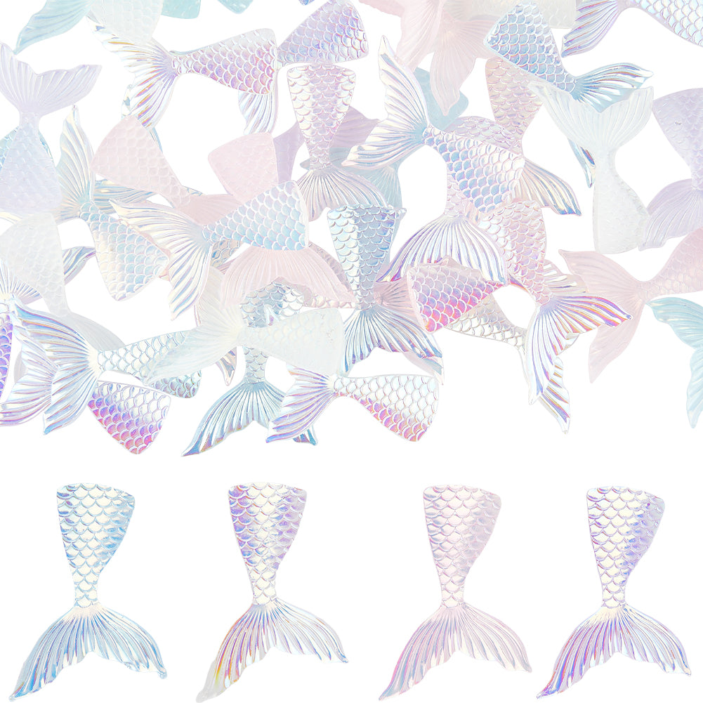 48Pcs 4 Colors Luminous Transparent Resin Cabochons, Fishtail, Mixed Color