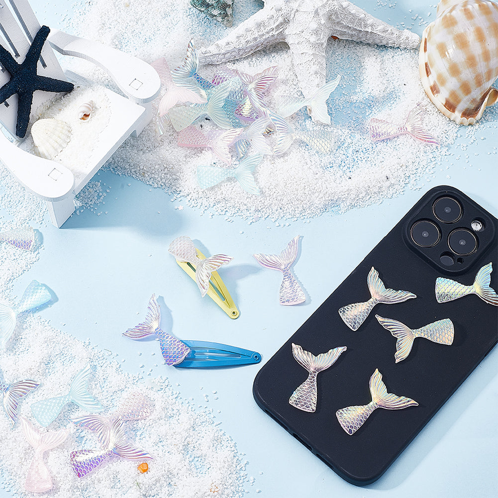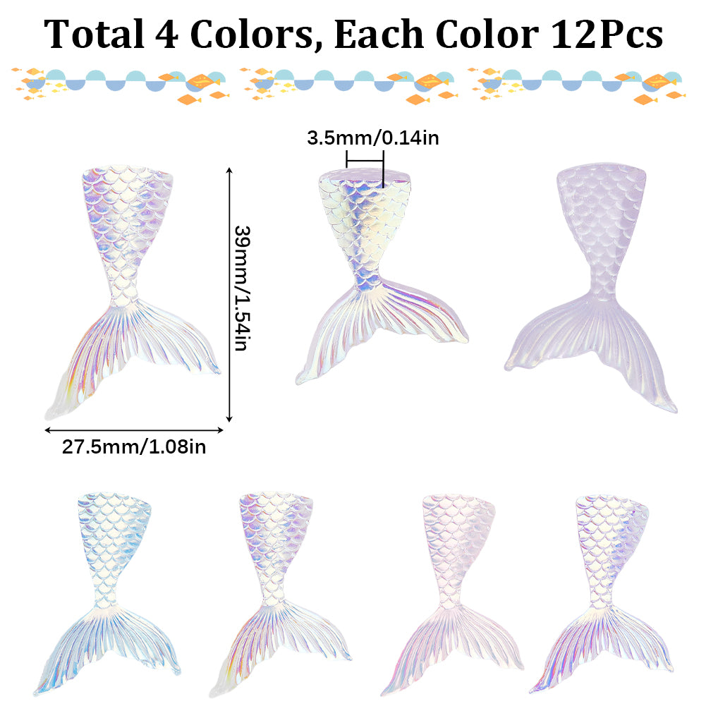 48Pcs 4 Colors Luminous Transparent Resin Cabochons, Fishtail, Mixed Color, 39x27.5x3.5mm, 12pcs/color
