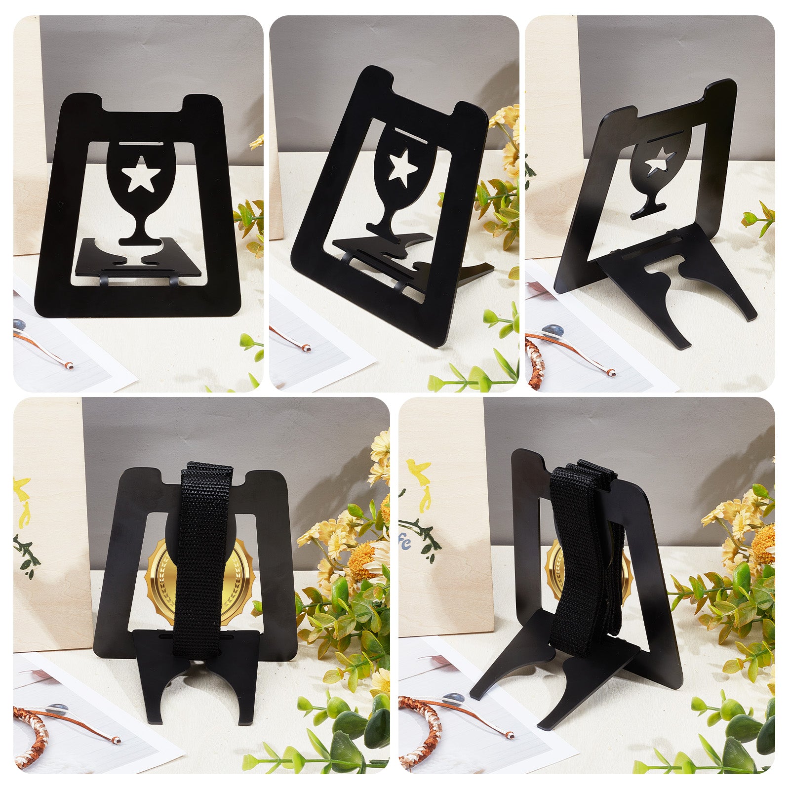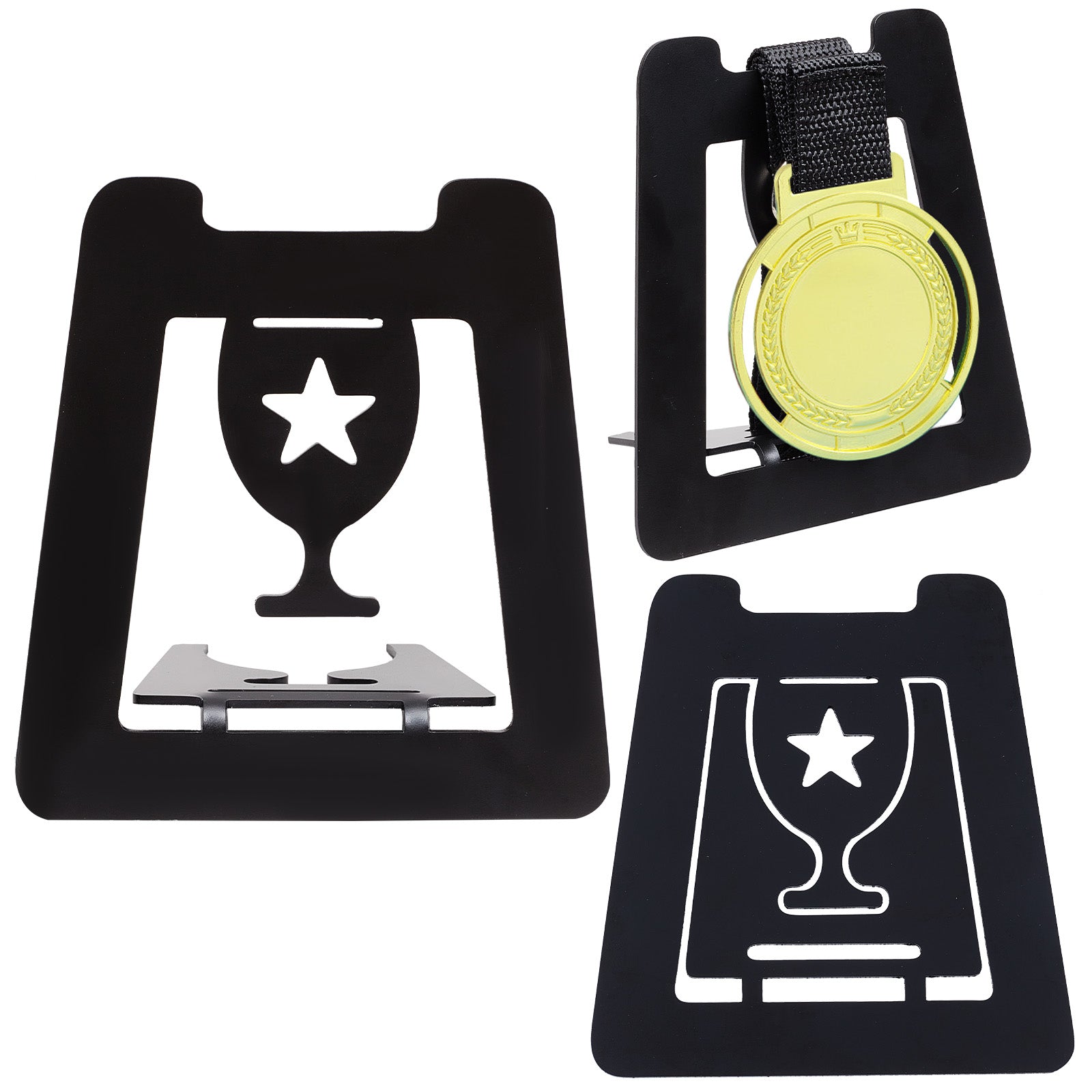 Iron Medal Display Stand, Medal Holder, Trapezoid with Trophy Pattern, Black