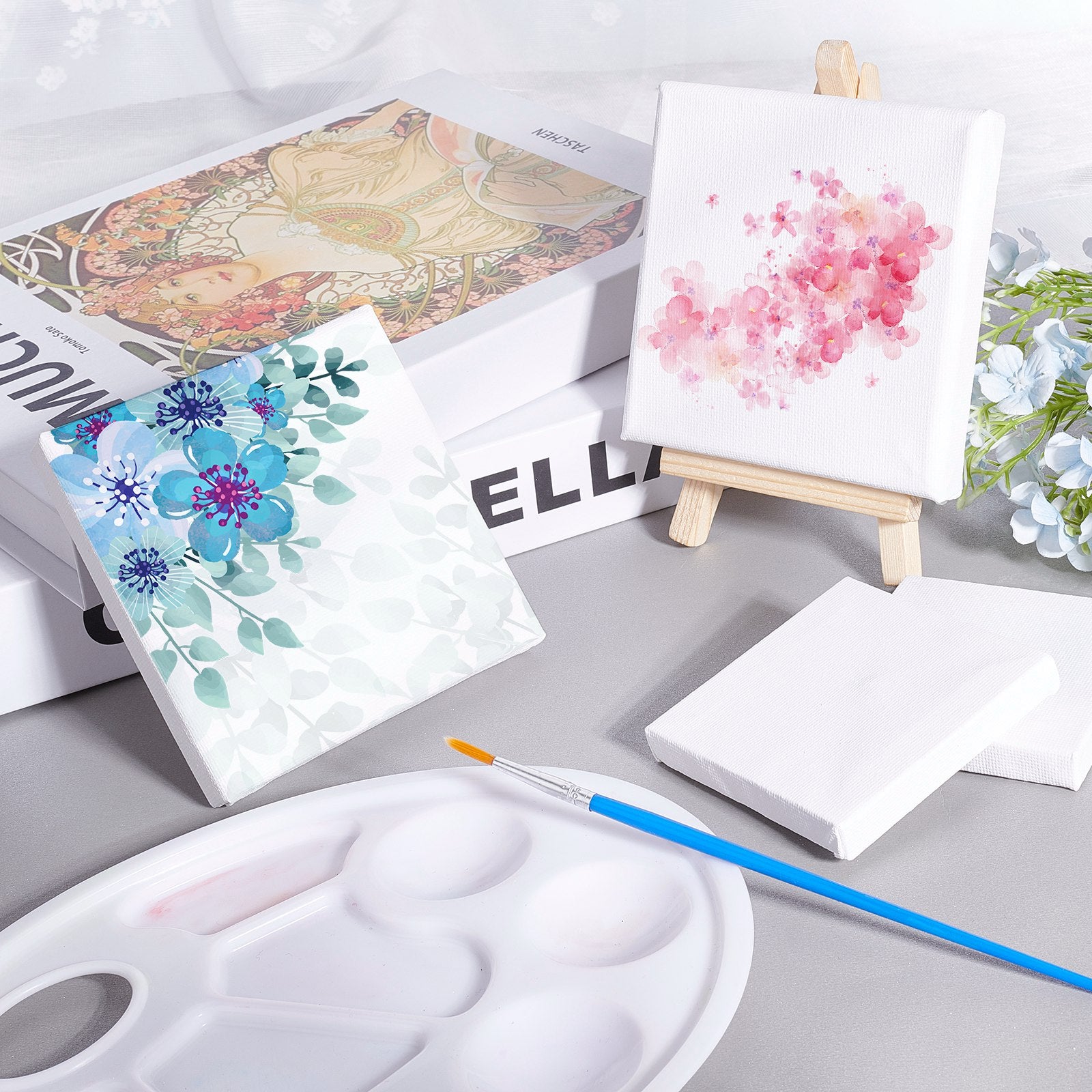 Globleland Painting Supplies, with Blank Canvas, Linen Covered Wood Primed Framed and Plastic Art Brushes Pen Value Sets, Mixed Color, 7.2x7.2x1.15cm